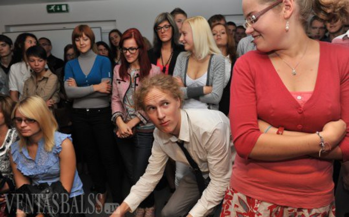 Студенты Вентспилсского ВУЗа как следует «разогрелись» на вечеринке, занялись нетрадиционным видом спорта и, конечно, приняли участие в официальном мероприятии во дворе ВУЗа.