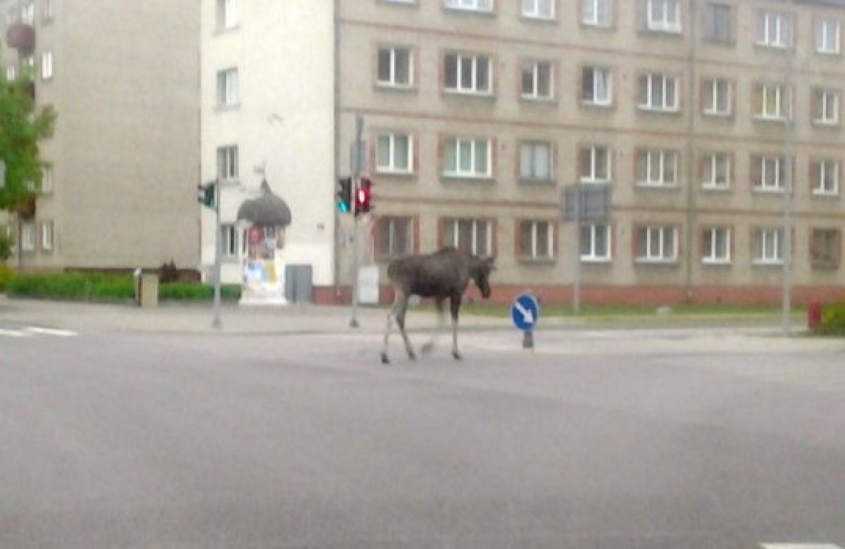 Вчера утром в 5:30 на перекрестке просп. Лиелайс и ул. Бривибас некому вентспилсчанину посчастливилось лицезреть весьма интересную картину — по городу, не спеша, прогуливался лось.