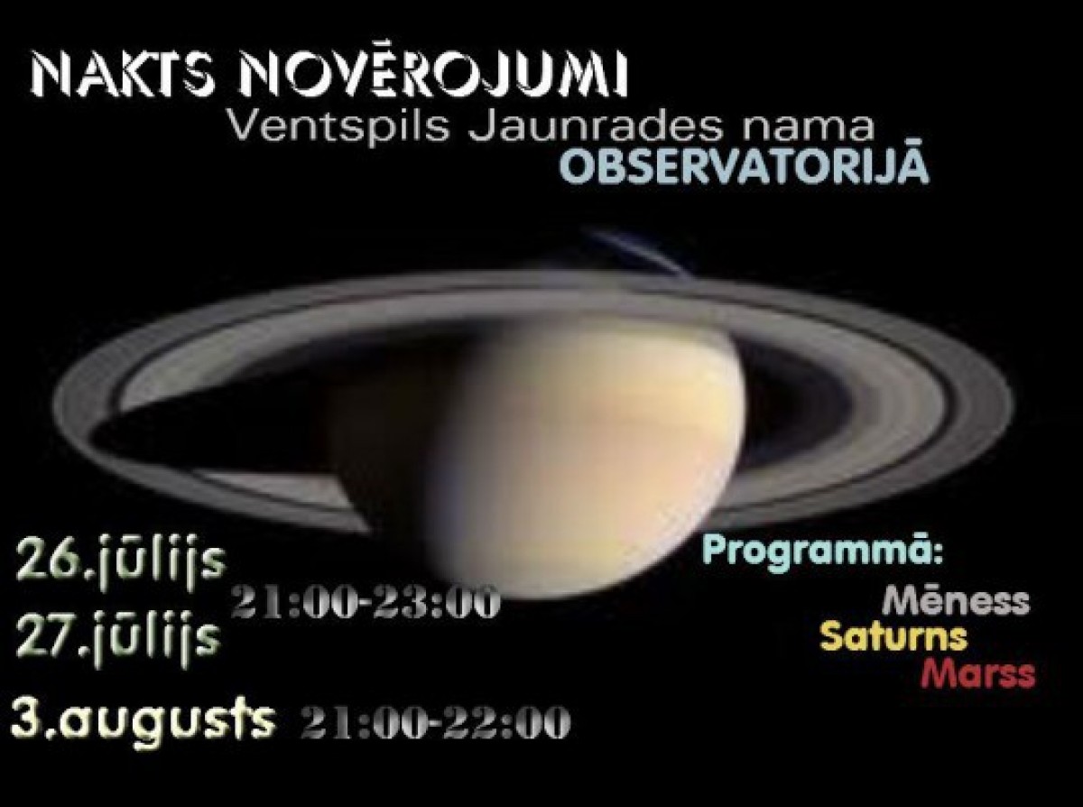 В конце июля и начале августа в обсерватории вентспилсского Дома творчества всех желающих будут ждать ночные наблюдения.