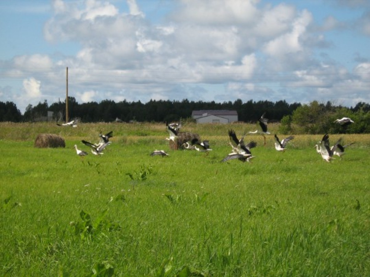 Вчера в Варвенской волости посетительница портала Вентас Балсс Линда наблюдала интересную картинку — на лугу одновременно находилось примерно 34 аиста.