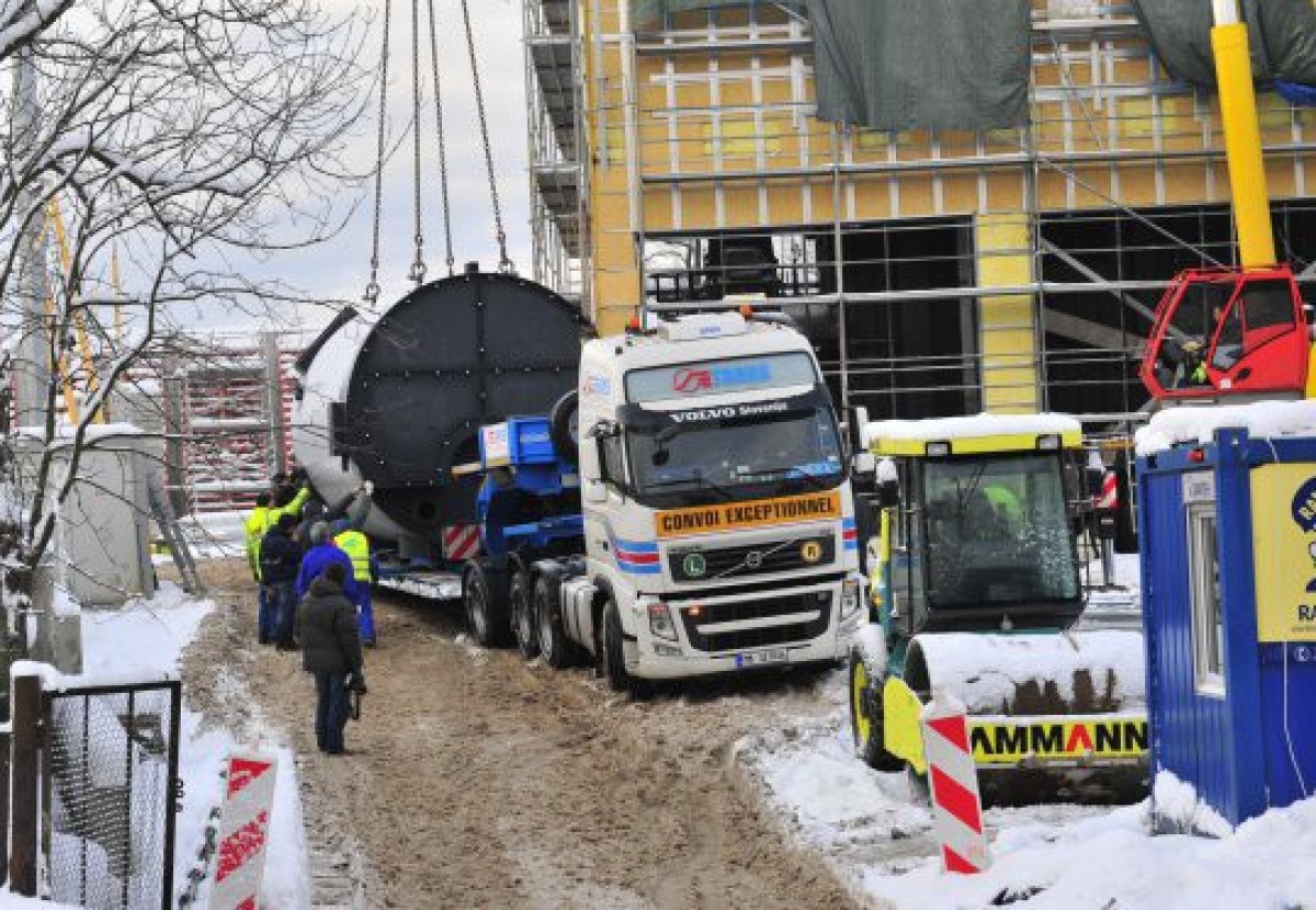 В понедельник на Вентспилсской котельной по ул. Бривибас, 38 для второго нового котла на биомассе привезли и установили главную — водонагревательную — часть. Обе топочные части были установлены летом с.г.