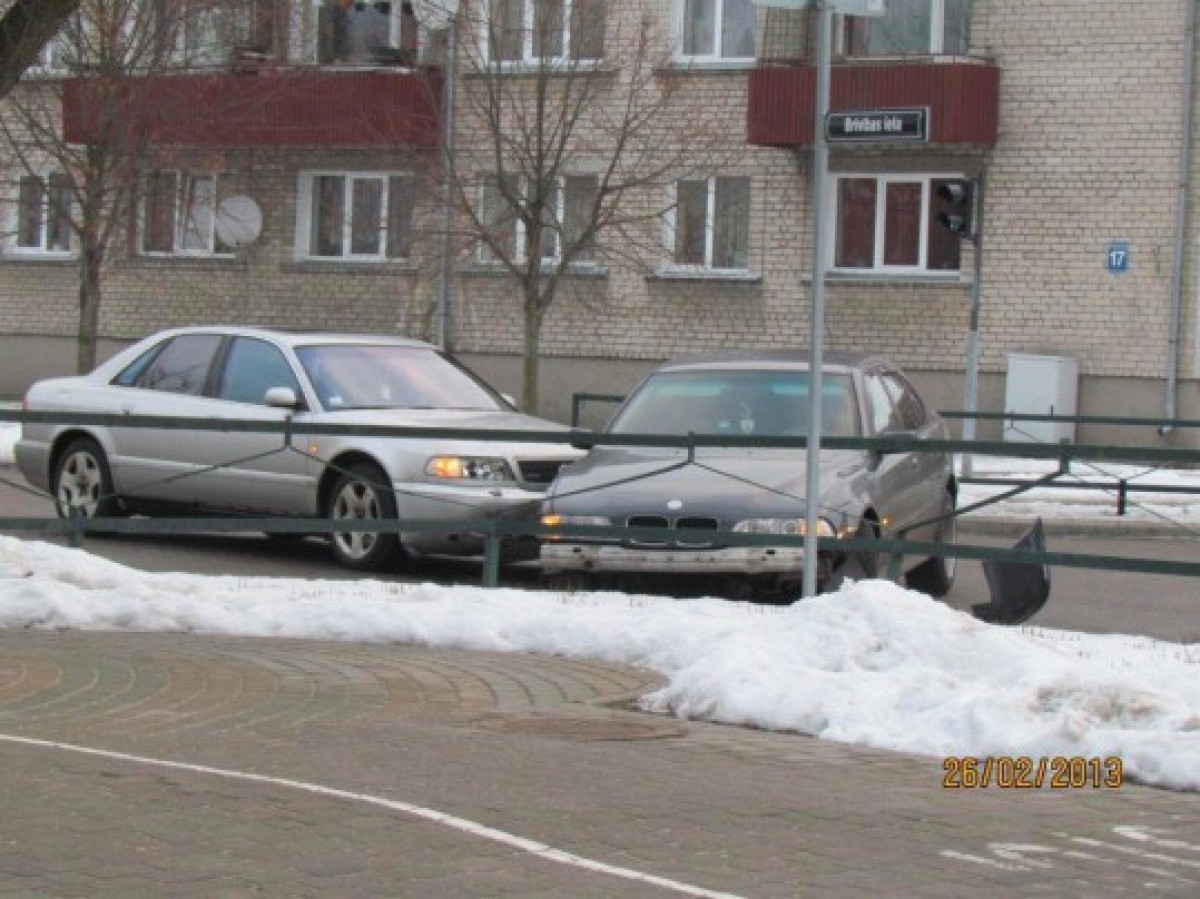 Портал www.ventasbalss.ru получил фотографии очевидца, на которых запечатлены участники аварии — машины Audi и BMW.