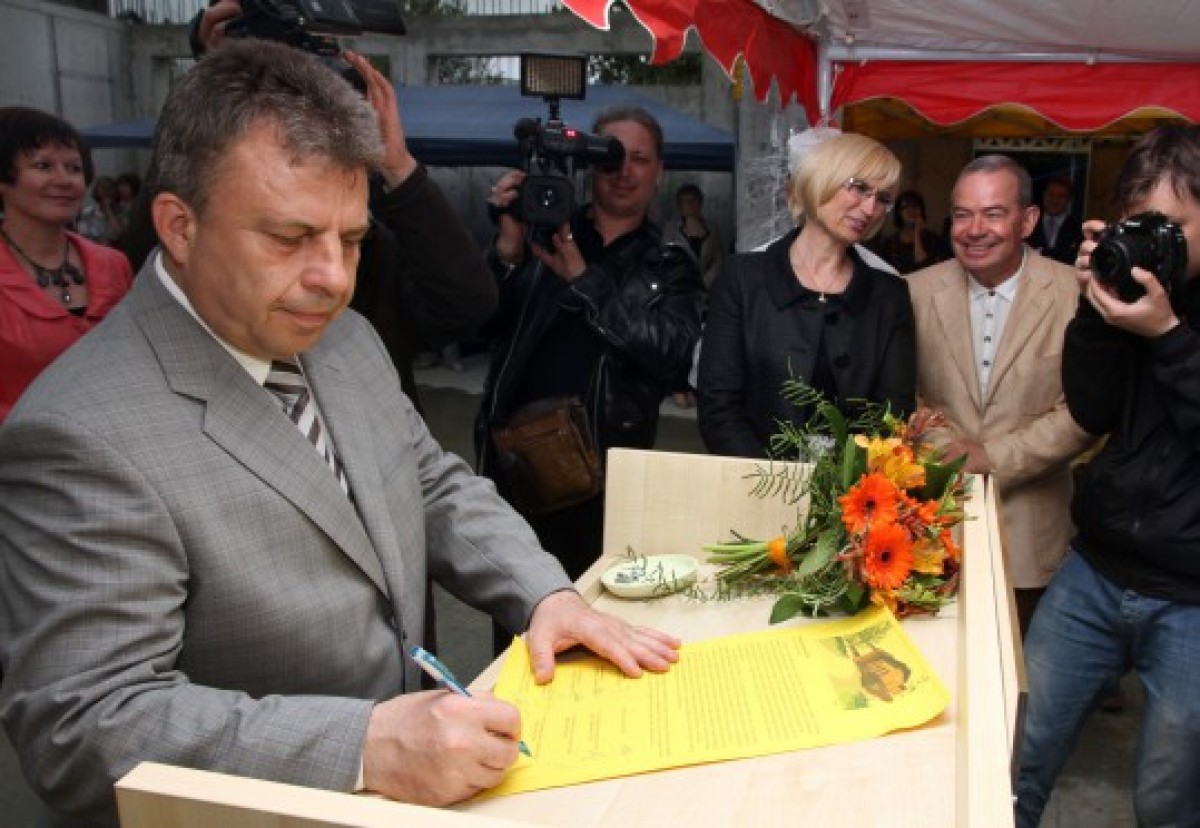 При поддержке вентспилсчан в стену строящегося нового здания Талсинской больницы была замурована капсула с посланием будущим поколениям.