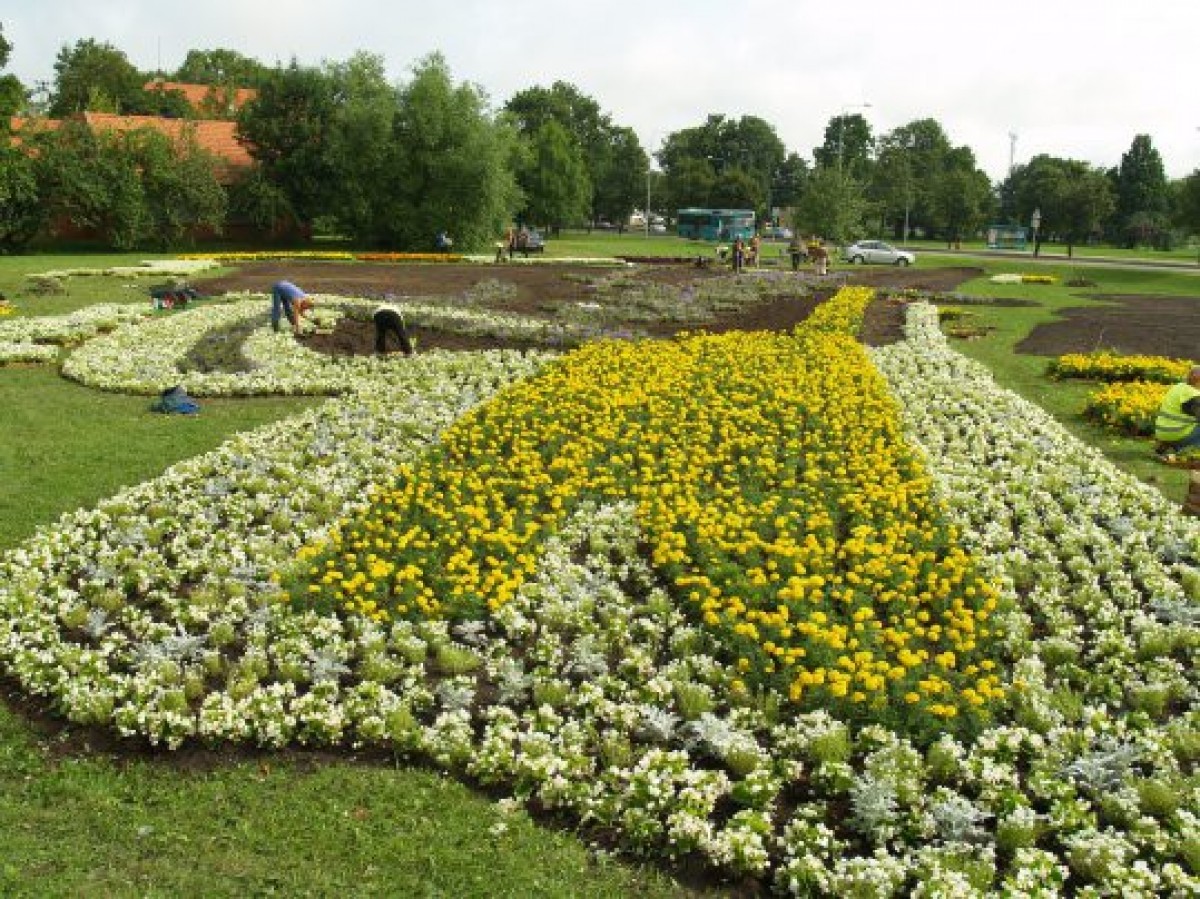Всю неделю сотрудницы Комбината благоустройства вместе с задействованными в программе столатовиков работниками подготавливали землю и сажали цветы. Одна из садовниц Вера, на минутку отвлекшись от работы, рассказала, что последние работы были самими трудными, однако результат впечатляет и вызывает чувство гордости. Особенно грандиозно клумба будет выглядеть на общей фотографии, сделанной с автоподъемника.