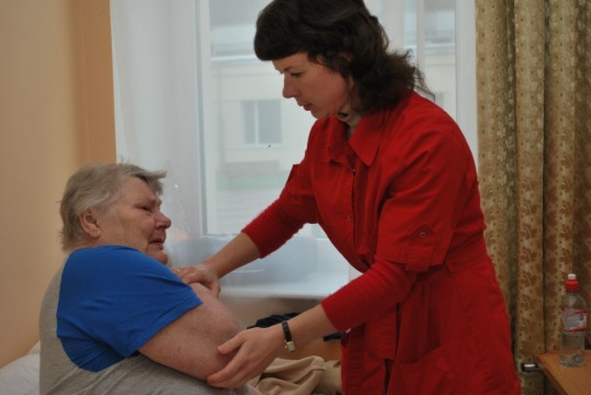 Митенберга Шевелёва работает с клиентами пансионата трижды в неделю. Сейчас у неё четыре пациента. Радость доставляет любое улучшение, но особыми являются случаи, когда совместными усилиями удаётся восстановить способность пациента самостоятельно позаботиться о себе – есть, надевать носки, тапочки, застёгивать рубашку, перемещаться по помещению с вспомогательными средствами иди без. Иногда в пансионат помещают людей с серьёзными проблемами со здоровьем – родственники работают и не в состоянии нанять сиделку, которая бы ухаживала за пожилым человеком. Зато в случае успеха – сейчас уже два таких пациента, с которыми эрготерапевт работала около года – постояльцы пансионата могут вернуться домой, так как они восстановили необходимые навыки и в будни могут сами себя обслуживать.
