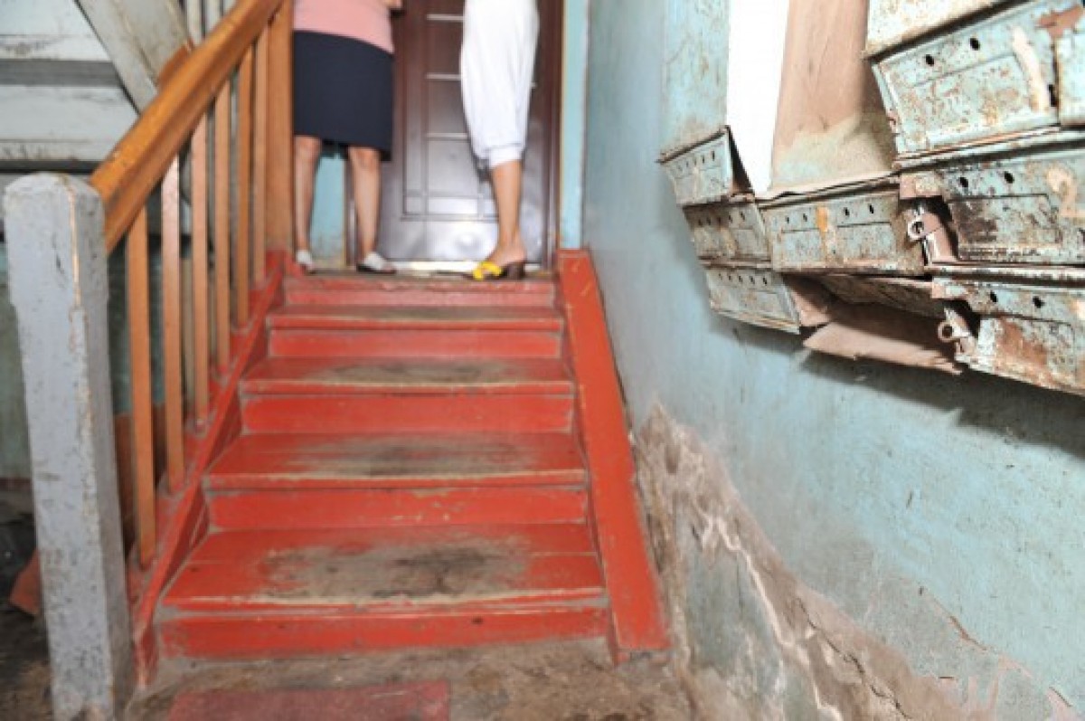 Хозяйка другой квартиры тоже рассказывает, что за 25 лет жизни в этом доме не проводился ни один ремонт. Крыша протекает, стены заплесневели, обои отклеились. Канализация тоже в плохом состоянии, печки не греют, а сарайчик для дров вообще сгорел.