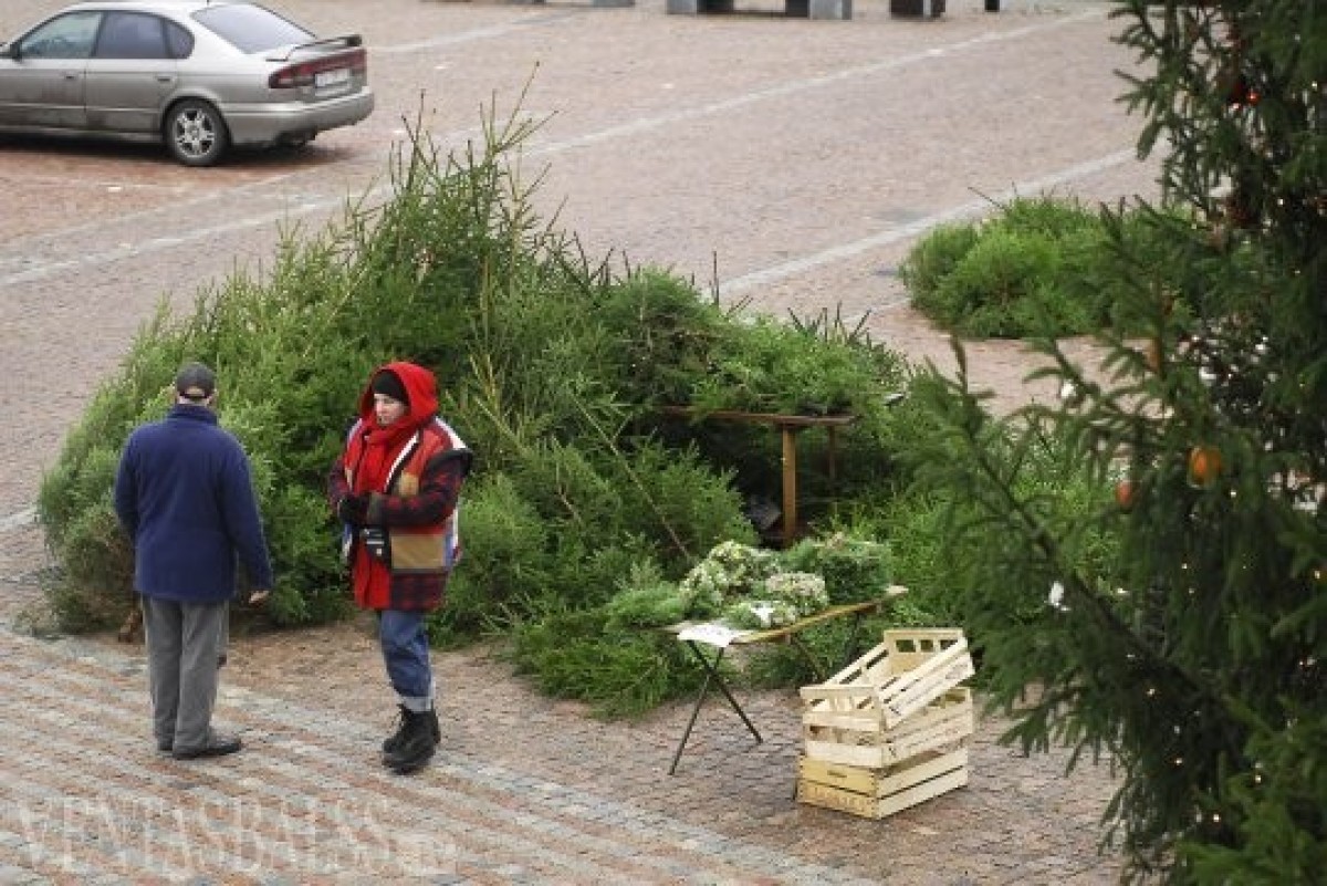 Уже сейчас на Рыночной площади полным ходом ведется торговля рождественскими елочками и ветками.