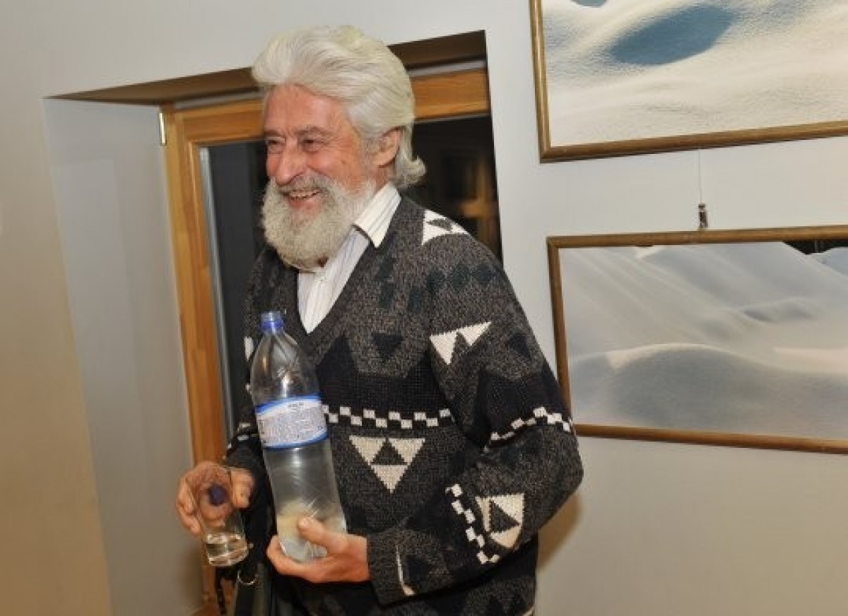 На фото: Аустрис Стурис угощает посетителей фотовыставки добытым соком.