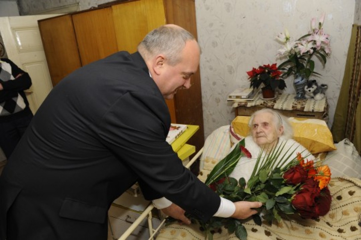 Маргарету поздравил председатель краевой думы Айварс Муцениекс, руководитель Соцслужбы Инта Рудбаха, глава управления Угальской волости Хелена Бойтмане и другие должностные лица, которые подарили ей цветы и единовременное пособие.
