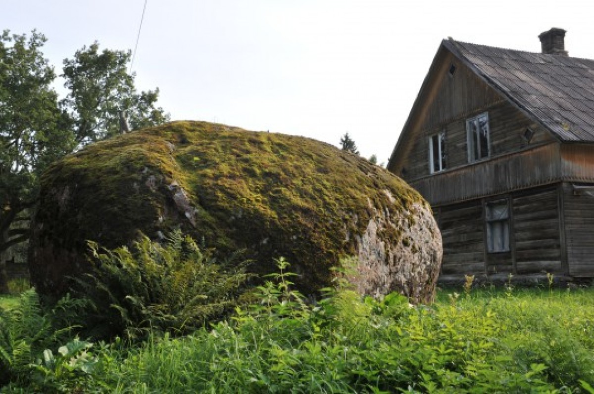 Опросив ряд знающих жителей, мы так и не узнали ответа. В свое время валун пытались расколоть, но даже несмотря на это, камень благодаря своим внушительным размерам (5 м в длину, 4,1 м в ширину и 2,7 в высоту) вошел в список самых больших камней Латвии.