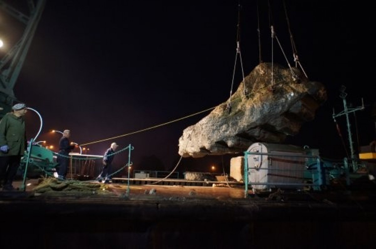 В ночь с 11 на 12 июня из русла Венты у Вентского моста вытащили бетонный элемент, весом примерно 60 тонн. Забавно, что своей формой бетонный гигант напоминает кроссовок.