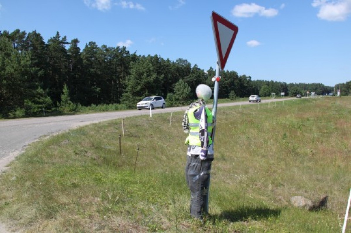 Жители Юркалне придумали своеобразный способ борьбы с автолюбителями, которые превышают скорость. Они сделали два чучела в человеческий рост и поставили их по обочинам шоссе Вентспилс–Лиепая.