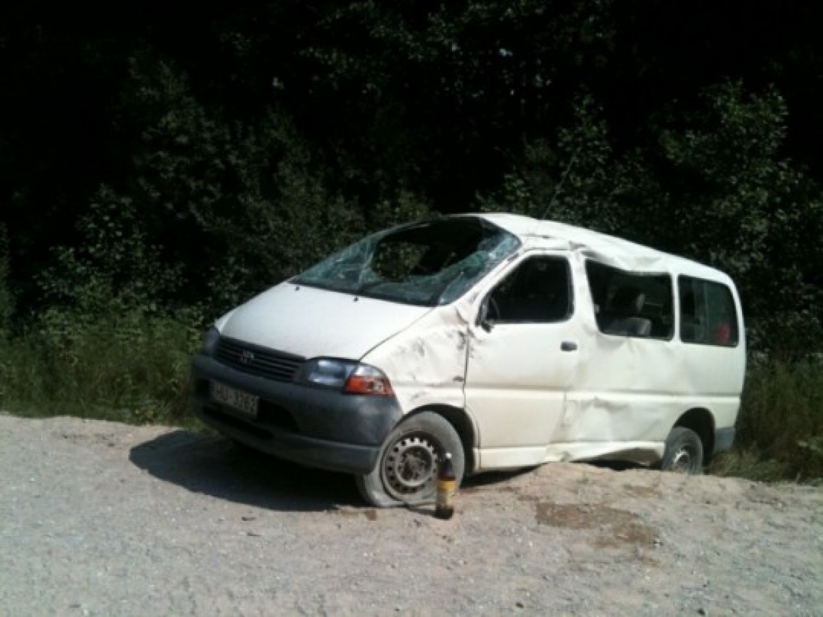 На рабочем микроавтобусе ехали 5 человек — шофер и 4 пассажира. Строители возвращались на работу после обеда. На повороте грунтового шоссе автобус занесло и он слетел в канаву. В больницу увезли всех 4 пассажиров. Никто из пассажиров опасных для жизни травм не получил — есть лишь синяки, и раны от разбившегося стекла.