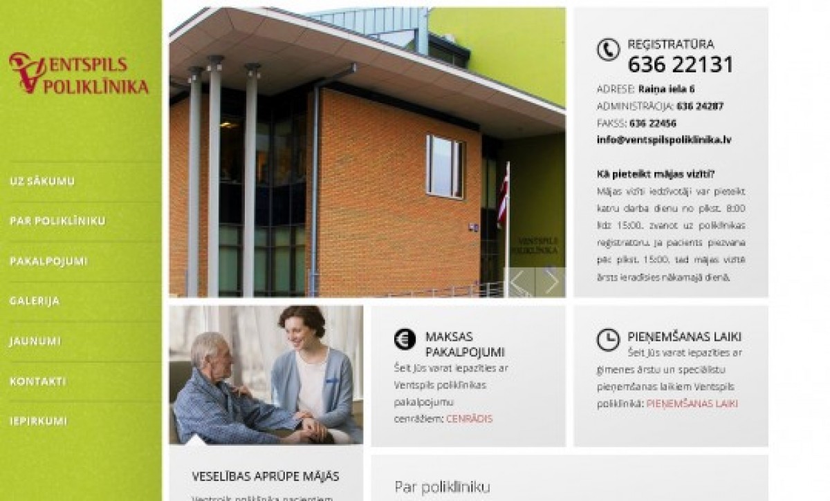 Вентспилсская поликлиника перешла на новую домашнюю страничку www.ventspilspoliklinika.lv, созданную с учётом современных тенденций в разработке интернет-сайтов.