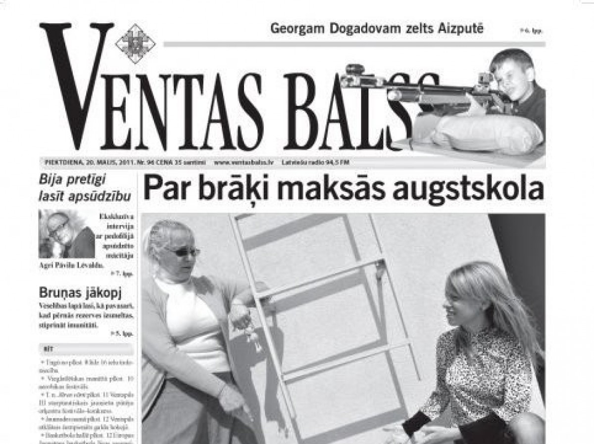 Напоминаем, что подписку на газету Вентас Балсс можно оформить в отделе рекламы и объявлений ООО Вентас Балсс, отделениях Латвияс Пастс, а также через Интернет: www.ventasbalss.lv/pages/order и www.pasts.lv/abone.