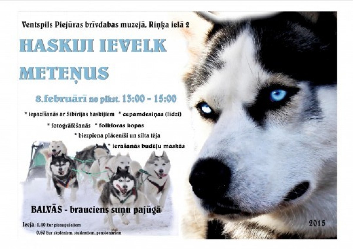 Каждый сможет приласкать и сфотографироваться с величественными представителями этой замечательной породы. Шкёнис рассказал Вентас Балсс, что эти собаки очень общительные и всегда рады, если кто-нибудь почешет у них за ушком. Владелец хаски возьмёт с собой и щеночков, с которыми также можно будет поиграть. Сотрудники музея готовят викторину – наиболее эрудированные гости, которые ответят на вопросы о собачках правильно, смогут бесплатно прокатиться на санях, запряжённых хаски.
