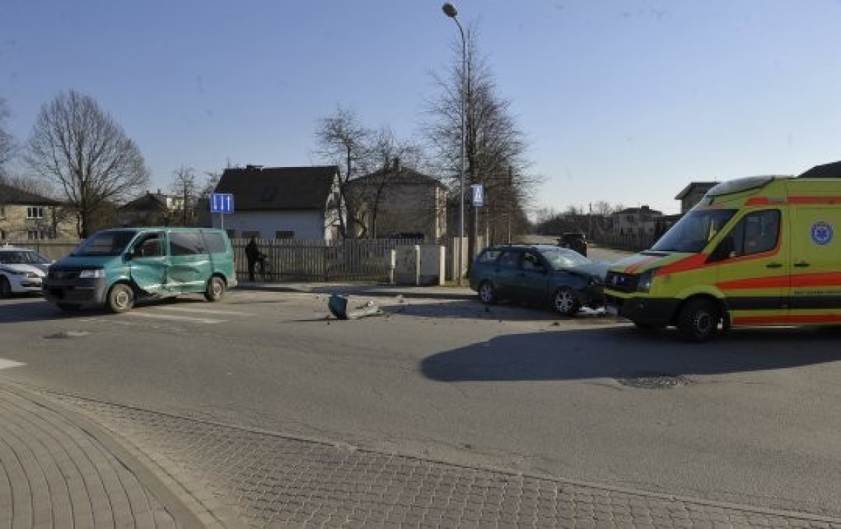 Скорее всего, автомобиль, двигавшийся по ул. Дикю, не уступил дорогу следовавшему по ул. Дурбес микроавтобусу. Двое человек находятся в больнице на медосмотре. Полиция проверяет обстоятельства случившегося.