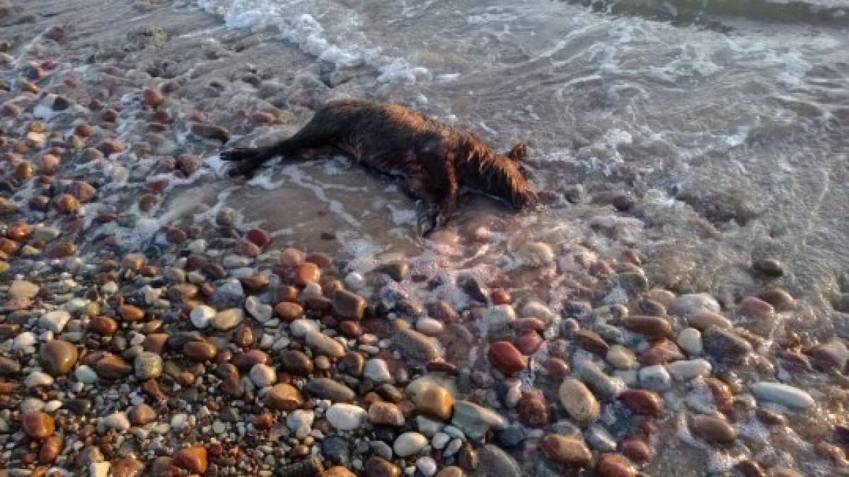 Море выбросило на берег мертвого кабана