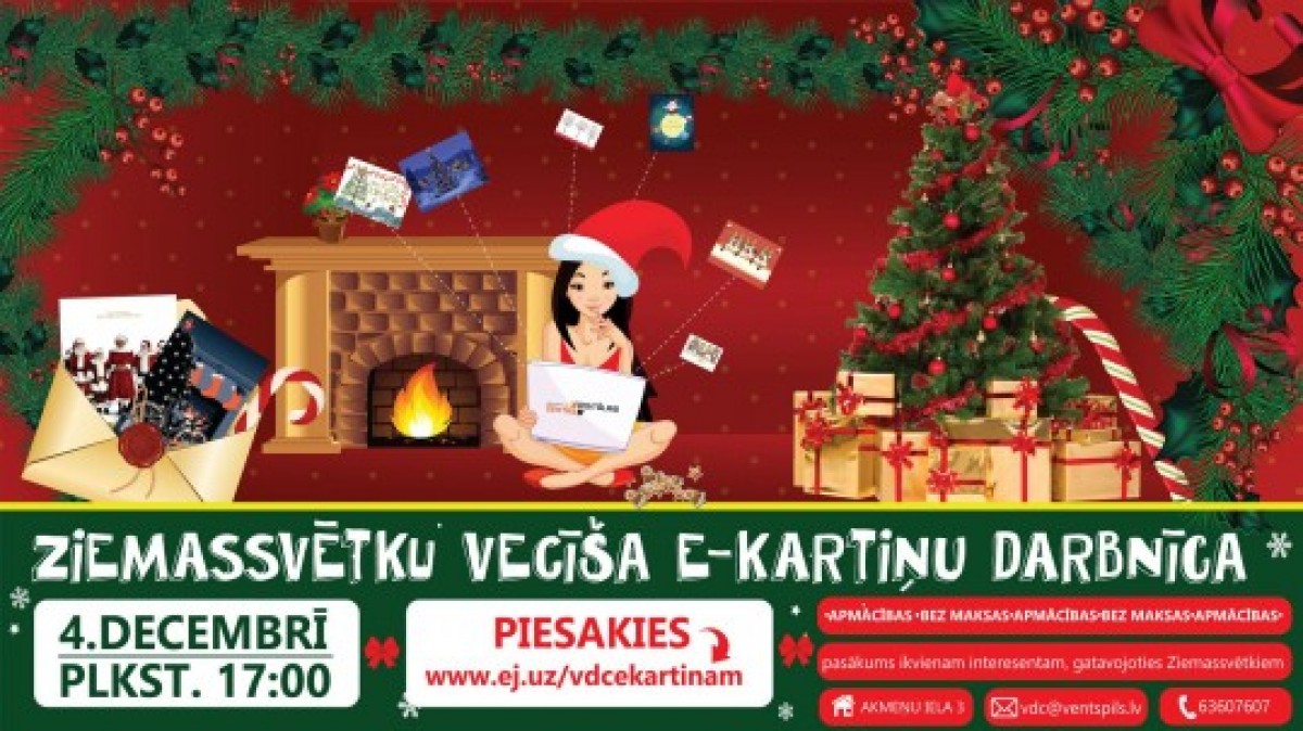 Поэтому Вентспилсский дигитальный центр приглашает каждого желающего в пятницу, 4 декабря, в 17:00 на мастерскую Деда Мороза по изготовлению электронных открыток.