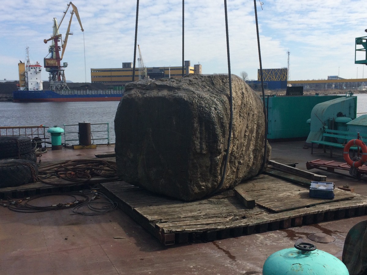 На данный момент судоходный канал углублен до 15 метров. Верхняя часть бетонного гиганта находилась на глубине 12,9 метра, а нижняя – на глубине 15,1 метра. Присутствие такого бетонного массива (его размеры: 4 метра в ширину, 3 метра в длину и 2,2 метра в высоту) в судоходном канале может создать угрозу для судоходства, поэтому специалисты Управления Вентспилсского свободного порта организовали подъем бетонного массива весом почти в 50 тонн.