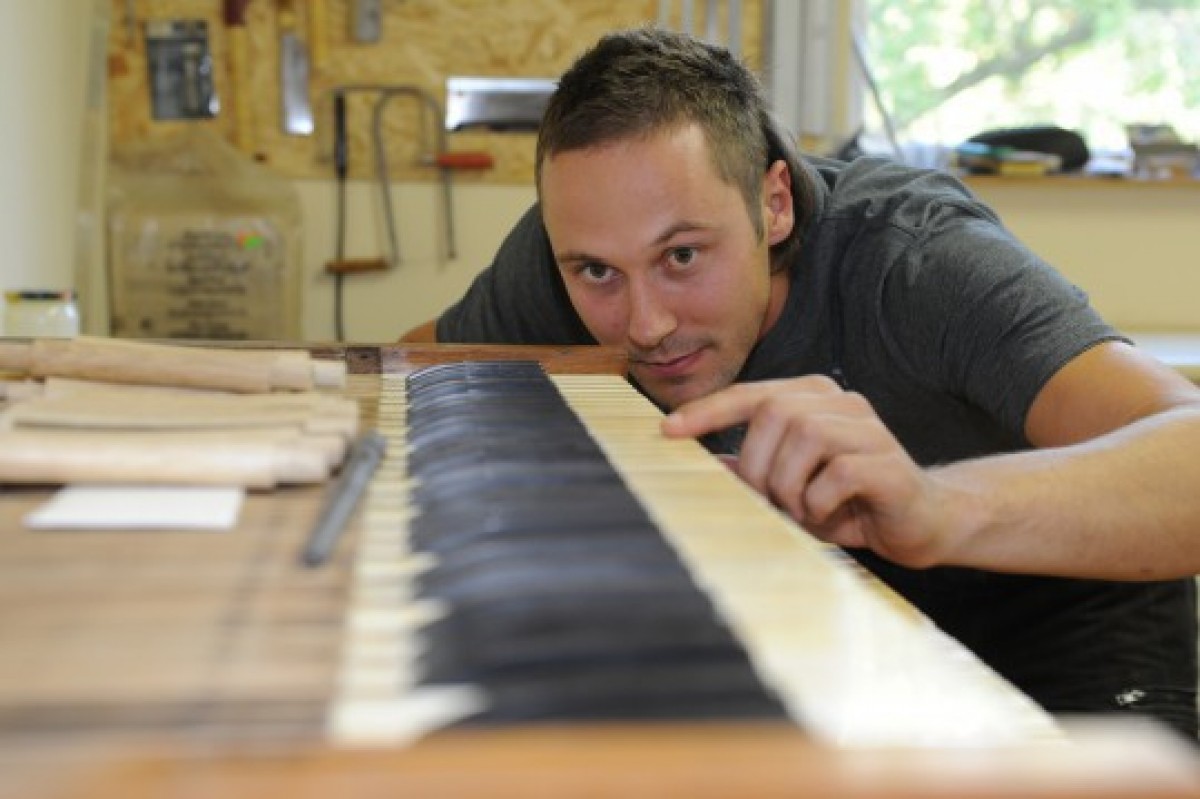 Ремесленник и реставратор ВЕРНЕРС КАЛАЦИС мог остаться в Англии, но все же вернулся в Латвию и обустроил мастерскую, в которой чаще всего изготавливает клавиатуры для органов.
