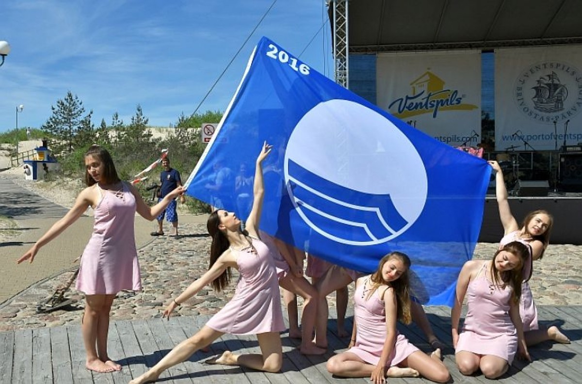 Синий флаг является одной из пяти программ всемирного Фонда экологического образования (FEE International). Она базируется на 29-ти строгих критериях, самыми важными из которых являются качество воды, экологическая информация и образование, управление окружающей средой, а также безопасность и сервис на пляже. Вентспилсский пляж стал первым в Балтии, получившим этот сертификат.
