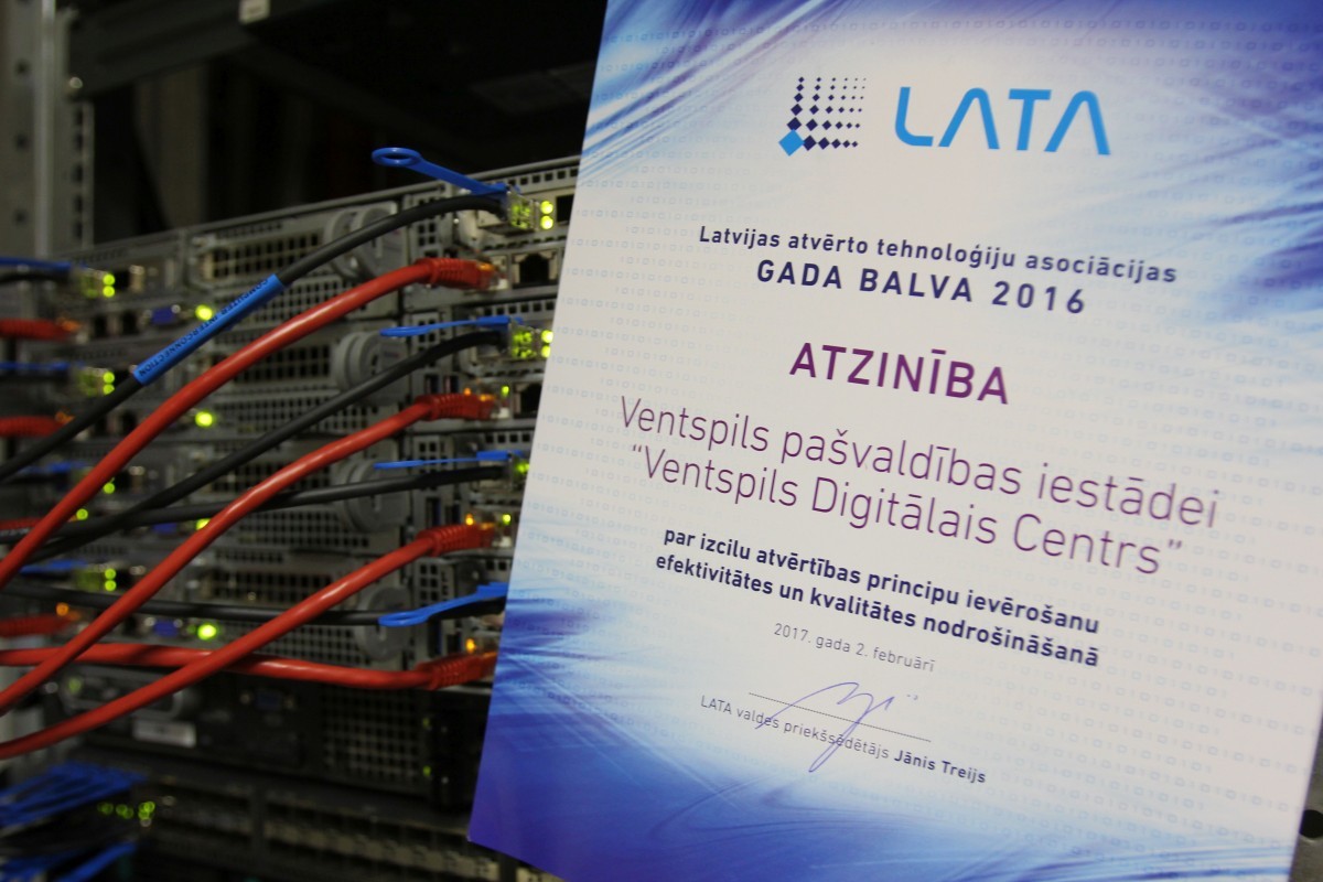 На конференции Латвийской ассоциации открытых технологий (ЛАОТ) Открытые технологии для развития вентспилсский Дигитальный центр удостоился похвалы за выдающееся соблюдение принципов открытости в обеспечении эффективности и качества.
