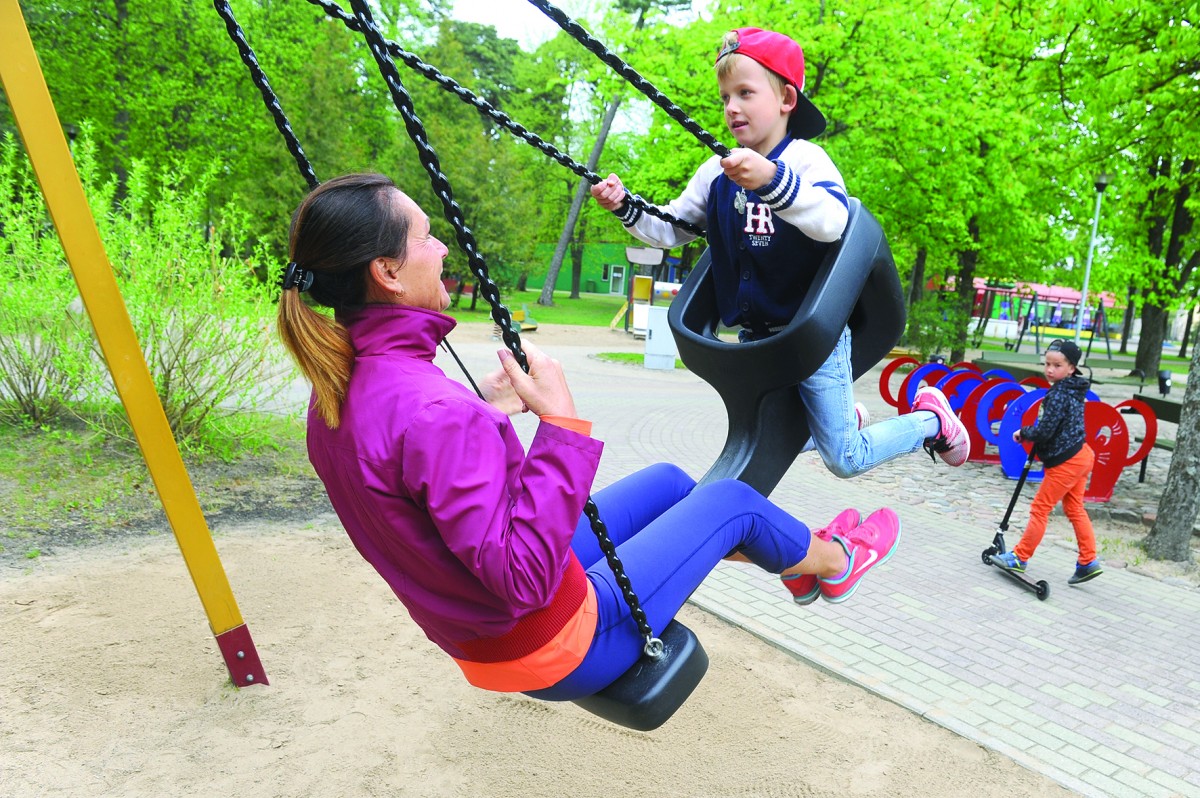 На данный момент работы проходят и в Детском городке, где песочное покрытие под игровыми элементами меняется на ударопоглощающее прорезиненное. В Детском городке, парке Фантазия и на пляже установлены качели, в которых родители могут качаться вместе с ребёнком. В прошлом году эти качели стали новинкой в городке, тут же удостоившейся признания со стороны жителей. Пуриньш поясняет, что сейчас рассматривается возможность установить подобные качели и в других местах города.