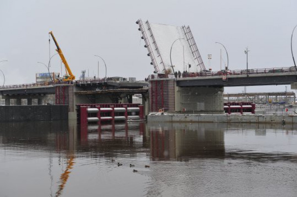Реконструкция Вентского моста продолжается, сегодня прошла очередная проверка механизма разводной части моста.