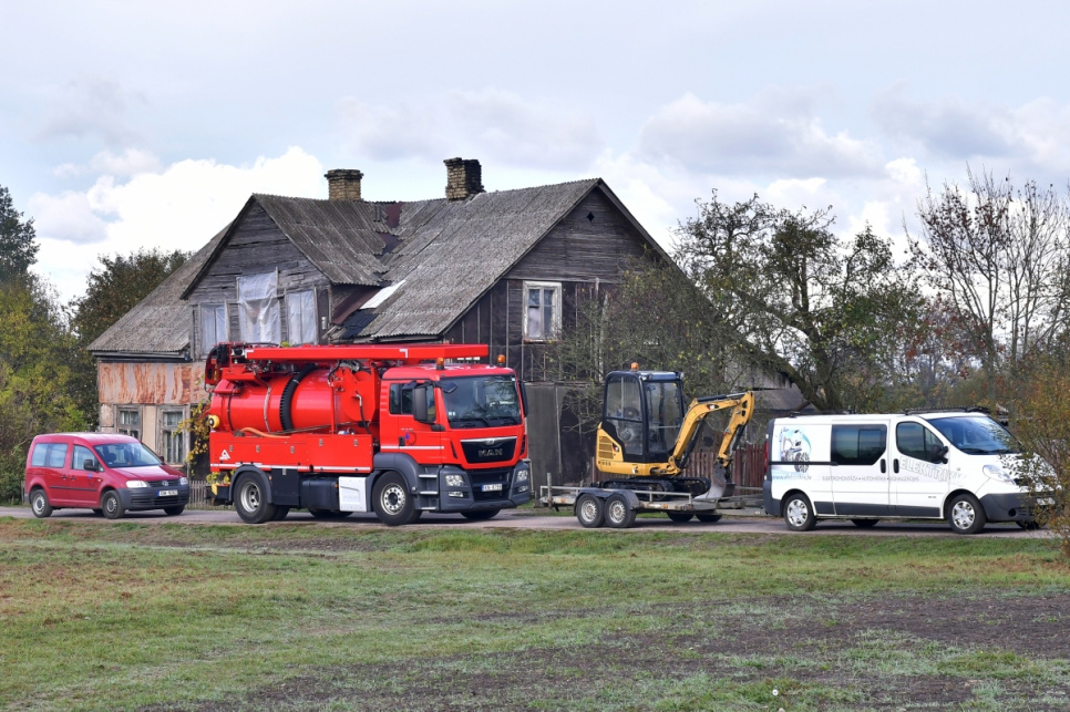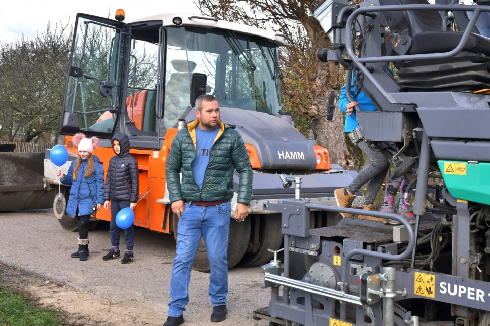 На ул. Ротас разместили разную строительную технику, при помощи которой и велось строительство дороги.