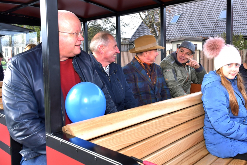 На открытии мероприятия с торжественной речью выступил председатель гордумы Айвар Лемберг, после чего собравшиеся вместе проехались по реконструированному отрезку на Туристическом паровозике – до ОООС Вентспилс рейс и назад до ул. Ротас. Также для посетителей провели небольшую викторину.