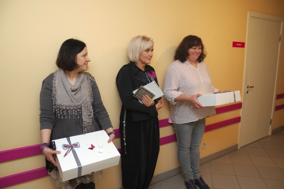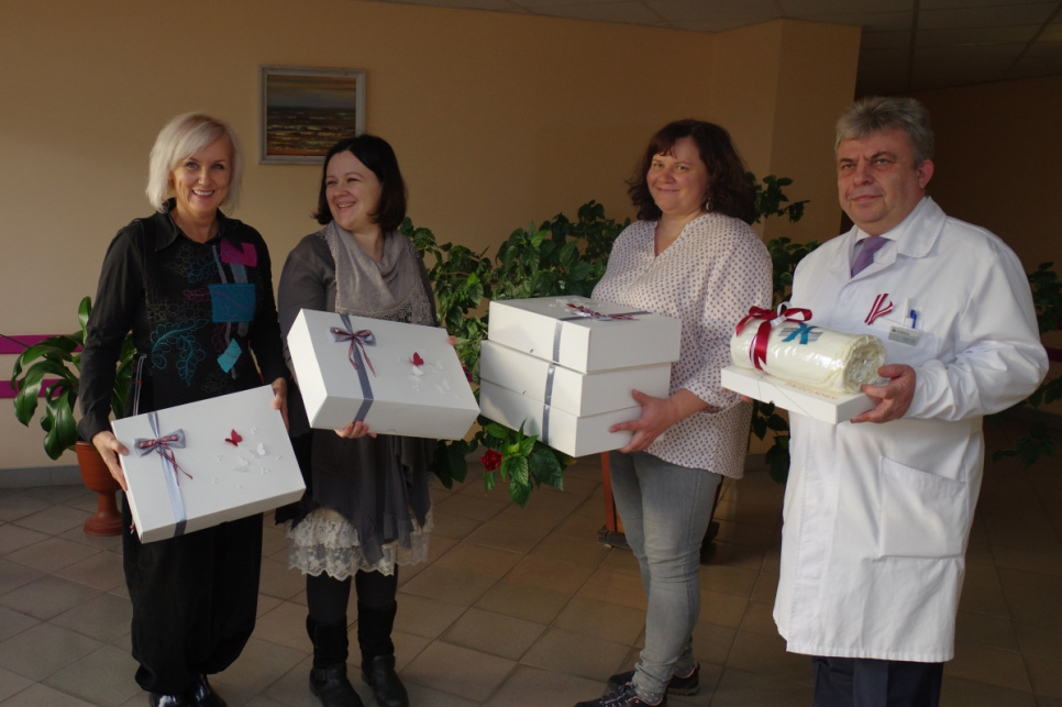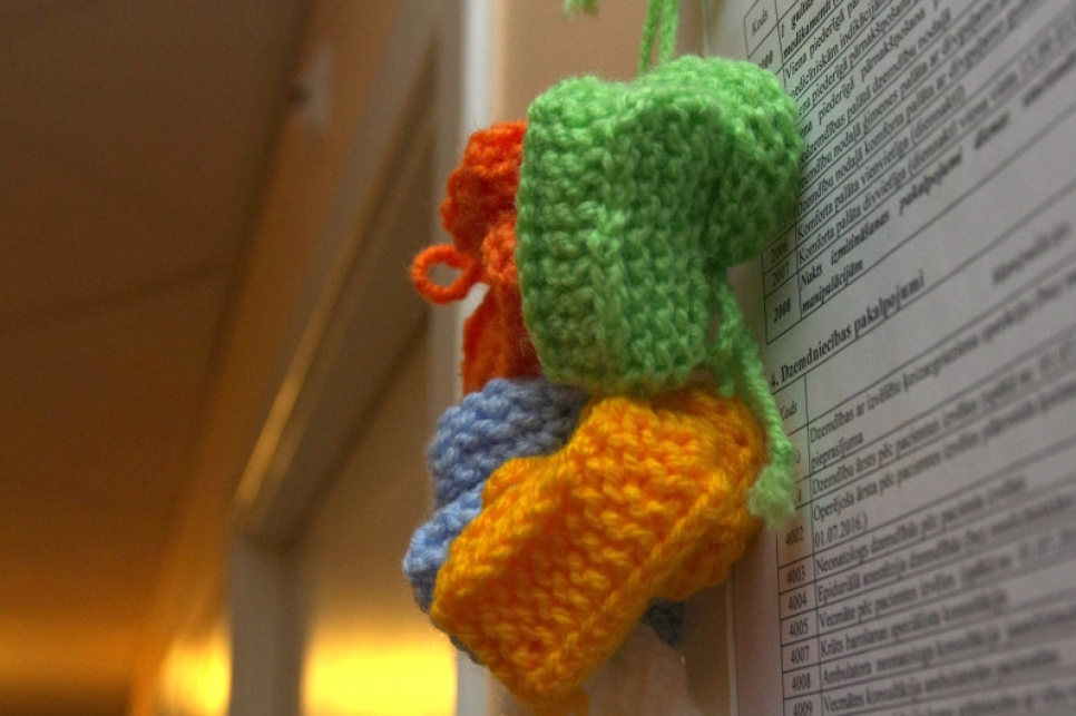 18 ноября в Северокурземской региональной больнице родилась одна малышка – дундагчанка Стейсия Скарбиниеце, увидевшая свет в 9:41. На следующий день девочку и её маму Лауру Саркане поздравили член правления больницы Дайнис Гилис, а также рукодельницы, которые по собственной инициативе решили подарить малышам, родившимся на государственный праздник, выполненные в технике текстильной мозаики одеяла. Стейсия получила подарок и от Бюро столетия Министерства культуры – узорчатые варежки, которые в этом году дарят всем родившимся 18 ноября малышам. Стейсия – второй ребёнок в семье, дома её ждёт четырёхлетняя сестра Кейта, родившаяся в Германии, – рассказала во время поздравления Лаура.