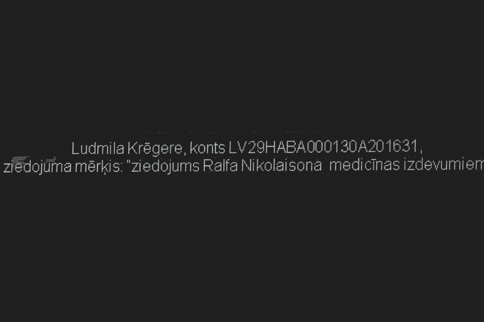 Цель пожертвования: ziedojums Ralfa Nikolaisona medicīnas izdevumiem.