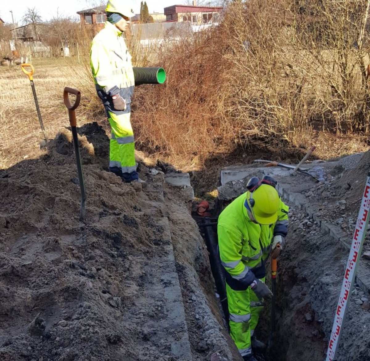 Для понижения уровня воды системы дождевой канализации и дренажа на ул. Екаба строятся со стороны домов с нечетными номерами, на отрезке от ул. Алсунгас до имеющейся там канавы. Помимо этого, планируется установить на уличном коллекторе смотровые колодца самотечной канализационной системы, от которых проведут ответвления.