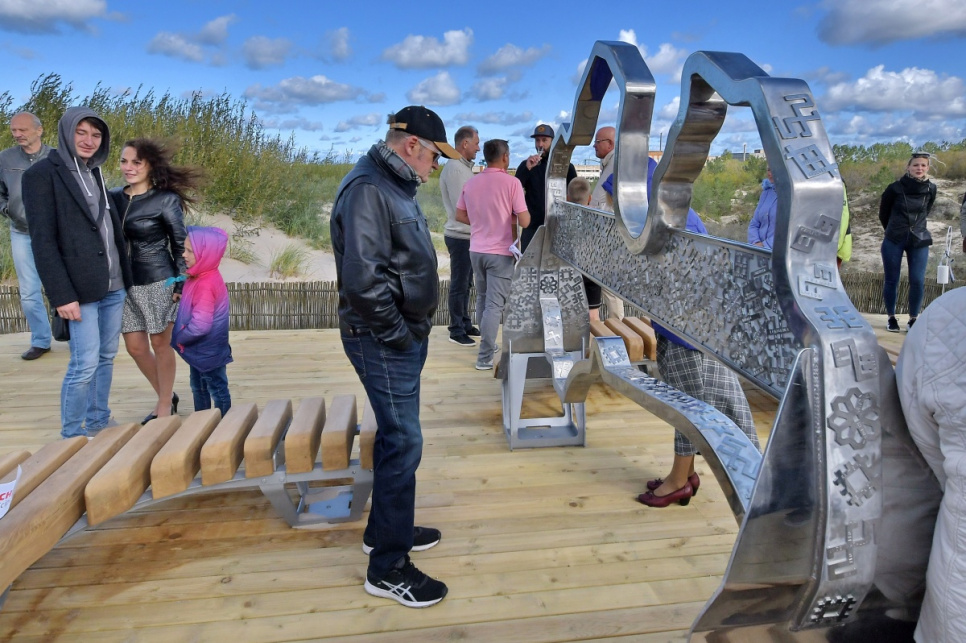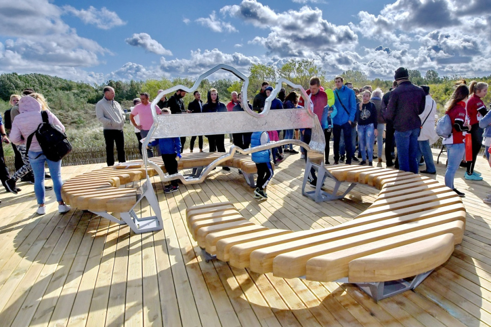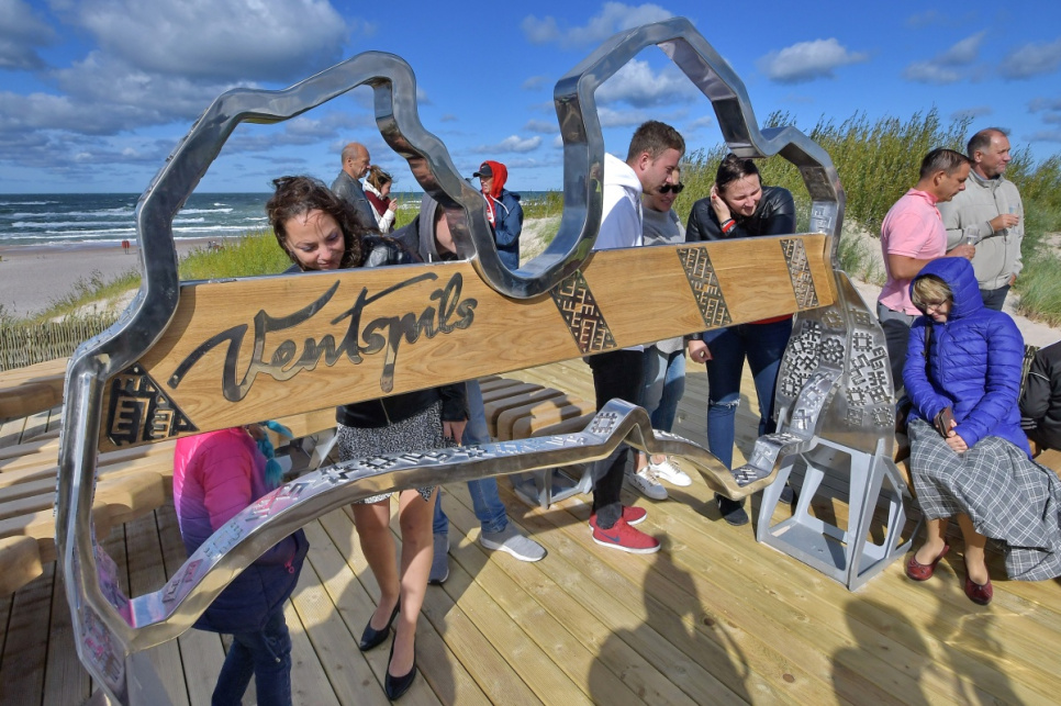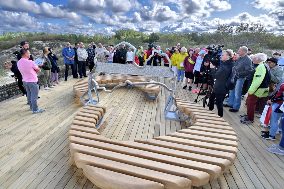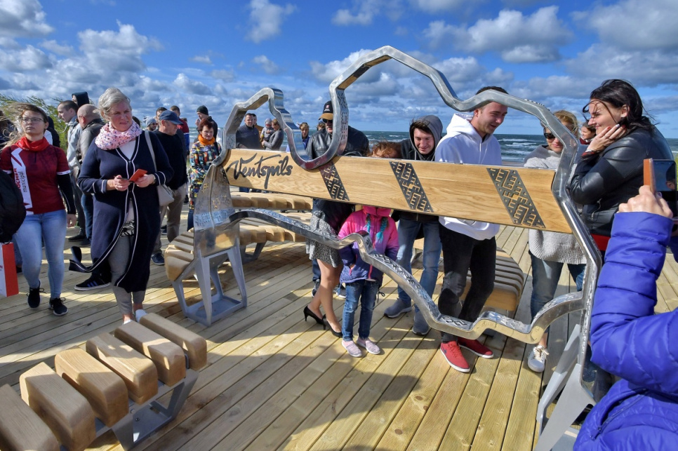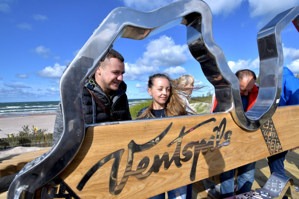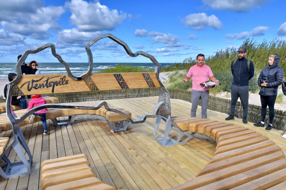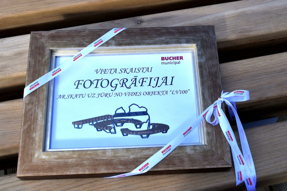 В субботу, на вершине самой высокой дюны у 5-й дорожки открыли новый объект смотра. Это подарок от ООО Bucher Municipal Вентспилсу в честь столетия Латвии.