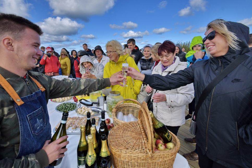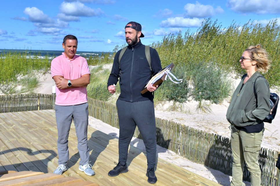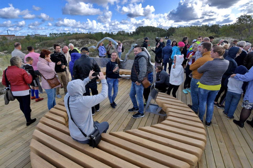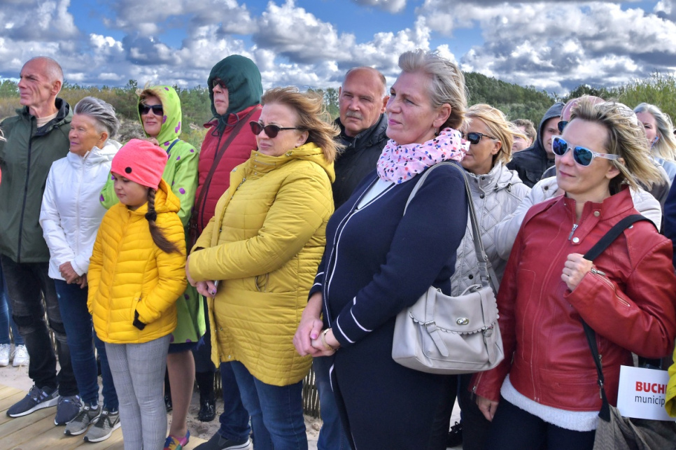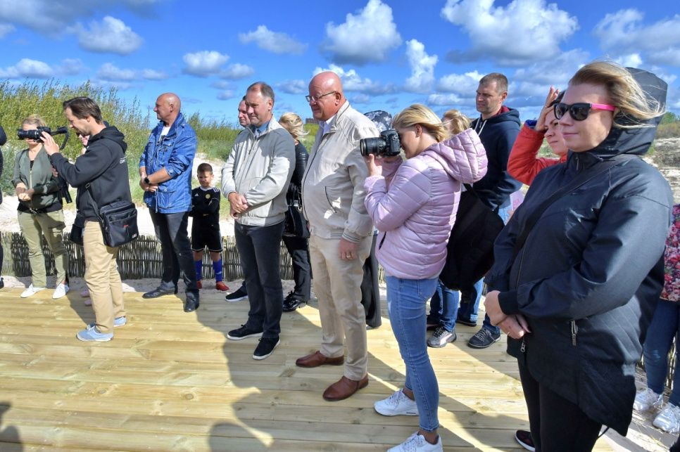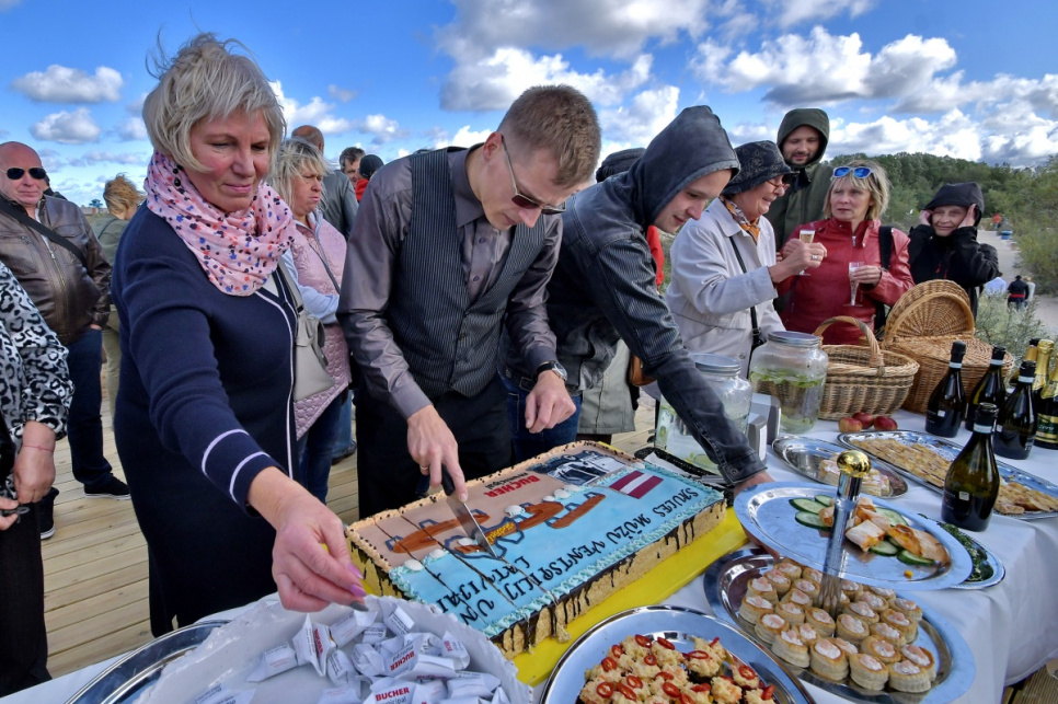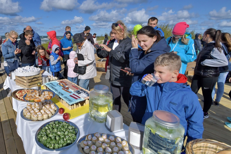 В субботу, на вершине самой высокой дюны у 5-й дорожки открыли новый объект смотра. Это подарок от ООО Bucher Municipal Вентспилсу в честь столетия Латвии.