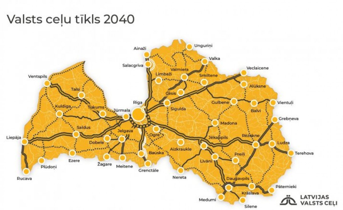 «Крупнейшими проектами развития дорог в ближайшие десятилетия могут стать перестройка Рижской окружной дороги в соответствии со стандартами скоростных магистралей, и перестройка трасс от Рижской окружной до Тукумса и Екабпилса в шоссе с четырехполосным движением. ViaBaltica будет развиваться как главная транзитная артерия с Западной Европой и Скандинавией. Есть уже известные наметки строительства объездного пути у Иецавы и Бауски». - Сообщил член правления Latvijas valsts ceļi Мартиньш Лаздовскис.