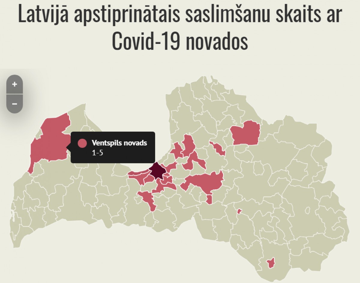 Большинство случаев заболевания "Covid-19" зарегистрировано в Риге. По меньшей мере шесть случаев заболевания также зарегистрировано в Юрмале. В других упомянутых выше самоуправлениях число людей, заболевших "Covid-19", не превышает пяти.