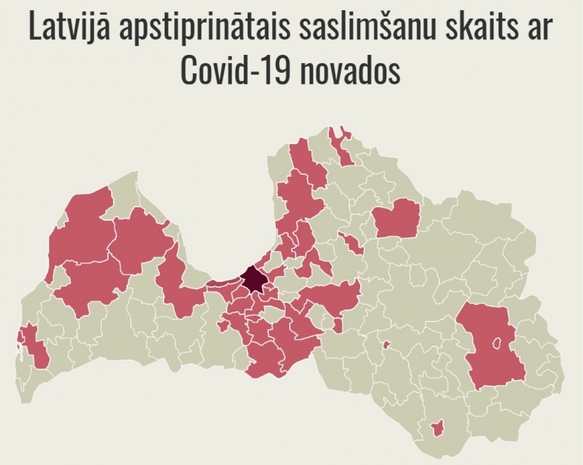 Новые случаи зарегистрированы в Талсинском, Тукумсском, Иецавском, Кегумском, Алойском, Руенском и Резекненском краях.
