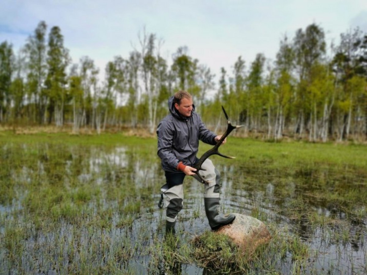 Фото: Петерис Димант во время своего первого посещения вентспилсского Оленьего парка нашёл рог оленя – добрый знак, свидетельствующий, что данное место нового хозяина примет.