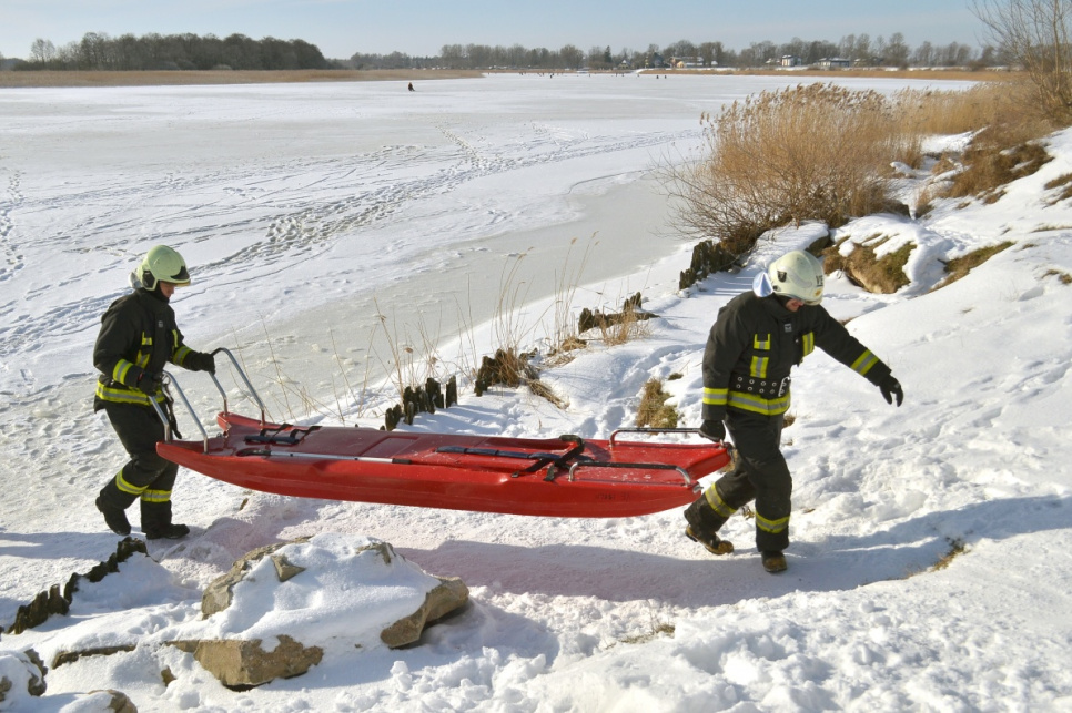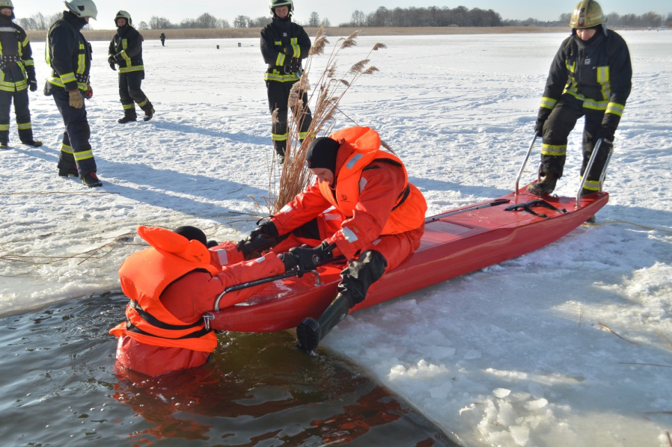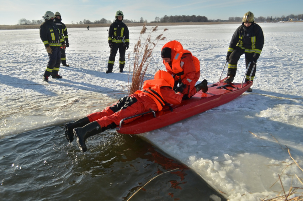 В четверг, в первой половине дня на берегу Венты отправились сотрудники Государственной пожарно-спасательной службы. На сей раз не на спасательные работы, а чтобы учиться.