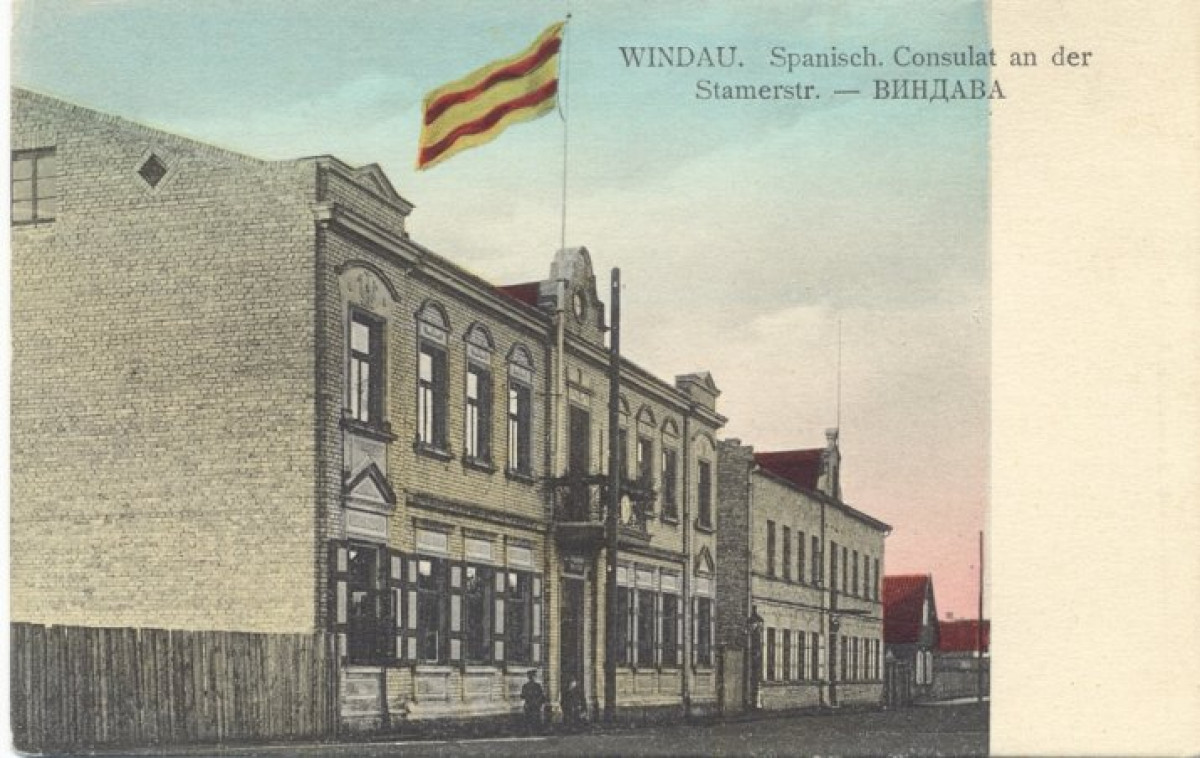 Открытка, на которой видно, что нынешнее здание редакции ещё не построено. В то же время известно, что дом, в котором когда-то располагалось Испанское консульство, а сегодня находится кафе Эрманитис, спроектирован в 1898 г.