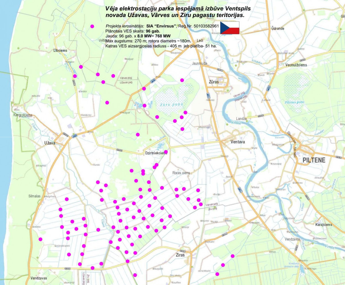 По решению Государственного бюро мониторинга окружающей среды начата оценка воздействия на окружающую среду (ОВОС) планируемого парка ветроэлектростанций в Ужавской, Варвской и Зирской волостях Вентспилсского края.