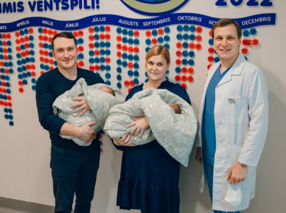 13 декабря в Вентспилсской больнице родились третьи в этом году двойняшки – сестры Аделина Анна и Эмилия Элза, которым помог появиться на свет доктор Сергей Тарасов, а также акушерки Айя Зиемеле и Байба Минценберга.