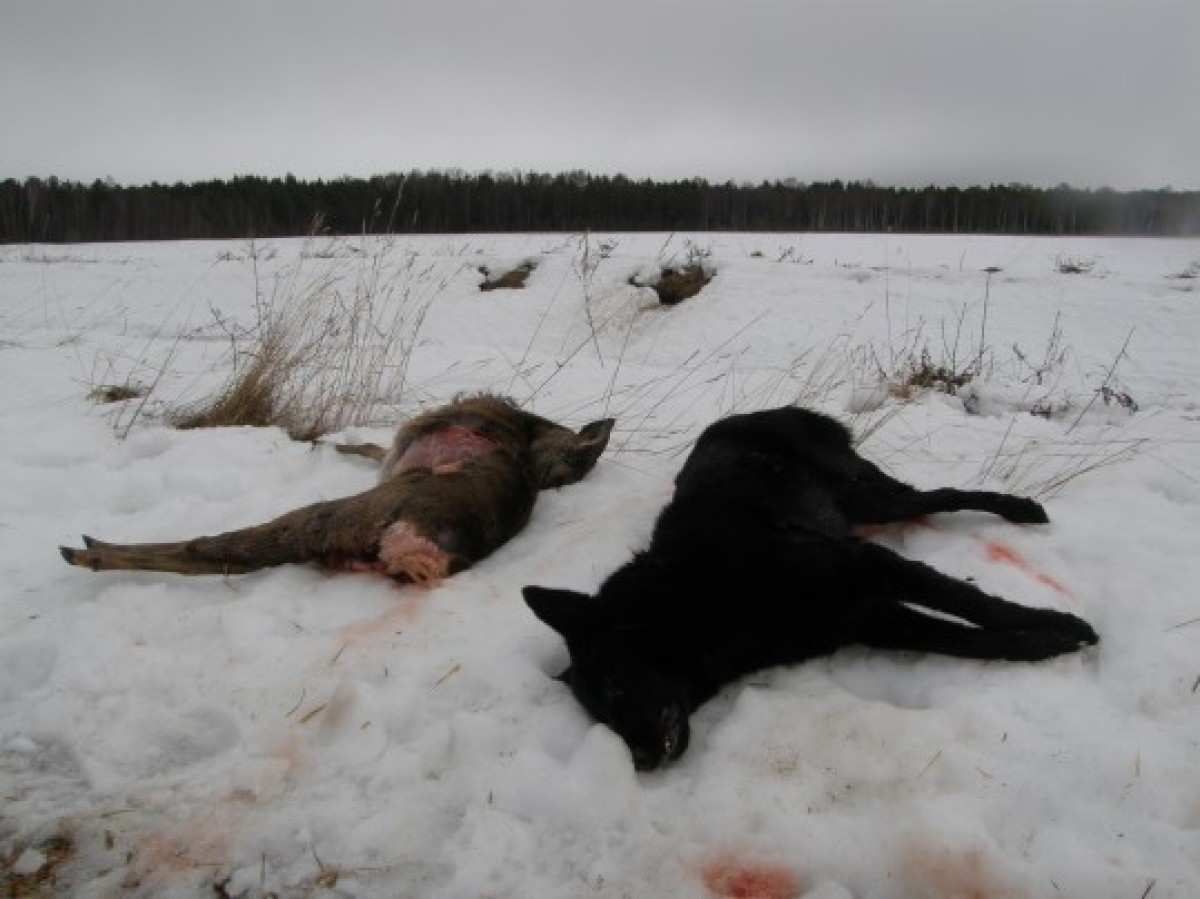 Собаки по природе обделены гуманным отношением к добыче. Волк сначала убивает свой обед, а собака раздирает на куски еще живое животное. Очевидцы ужасающей картины позвали представителя местного охотничьего коллектива, который пристрелил собаку.