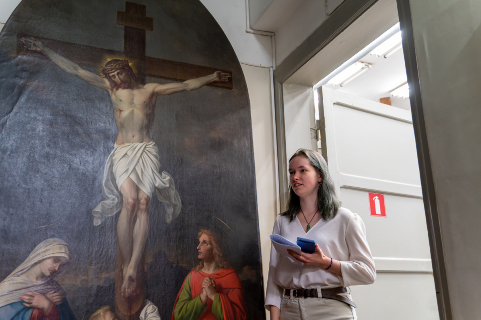 Студентка Резия Марта имеет особую связь с Попес – это её родина, поэтому девушка, узнав, из какой церкви икона, ещё больше заинтересовалась и увлеклась. Это была сильная мотивация, – подчёркивает студентка. По её словам, икона очень красивая, и Резия Марта рада, что совместными усилиями удалось продлить иконе жизнь. Работа оказалась не такой сложной, как предполагалось изначально, благодаря формату иконы: её длина составляет менее 3 метров, а ширина – 1,33 метра. Чистка производилась инструментами, похожими на ватные палочки.
