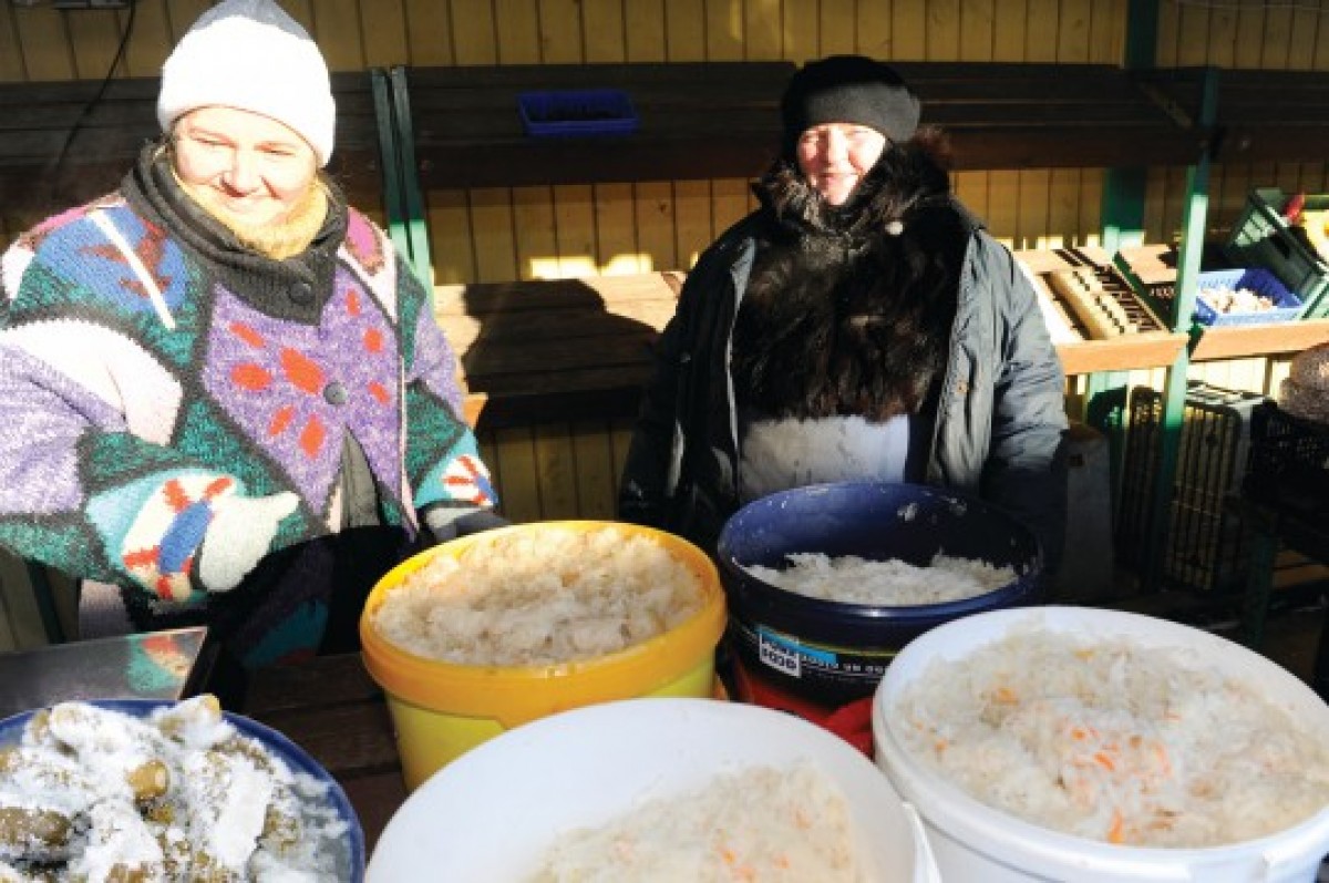 Продавщицы Рута и Эва на условия труда не жалуются. Торговать в крытом павильоне они начали с приходом зимы, примерно в начале декабря. Женщины продают свеклу, картофель, морковь, лук и прочие овощи, которые боятся морозов, поэтому хранить их следует при плюсовой температуре.