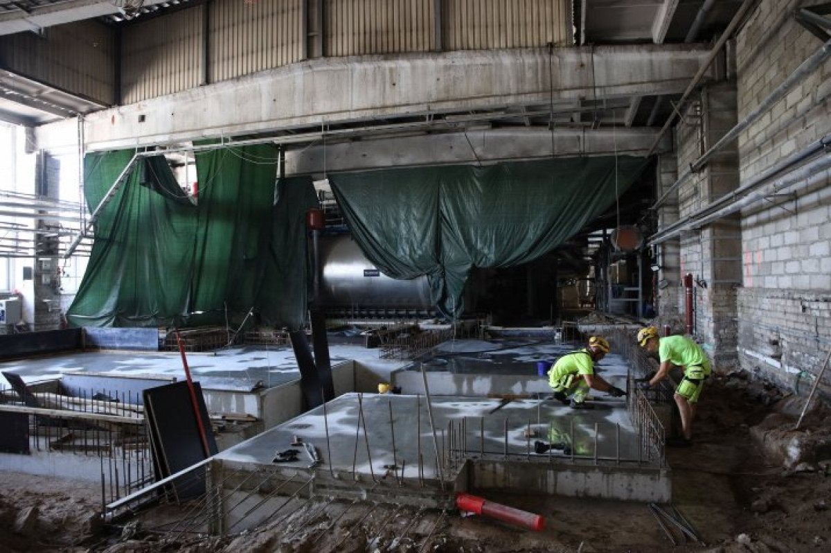 В ходе реконструкции в первую очередь было демонтировано всё устаревшее оборудование и приведены в порядок коммуникации под полом, которые служили десятилетиями, если вспомнить, что котельная по ул. Бривибас, 38 в следующем году отпразднует своё 55-летие. К настоящему времени в котельной подготовлено основание для новых котлов и топки.