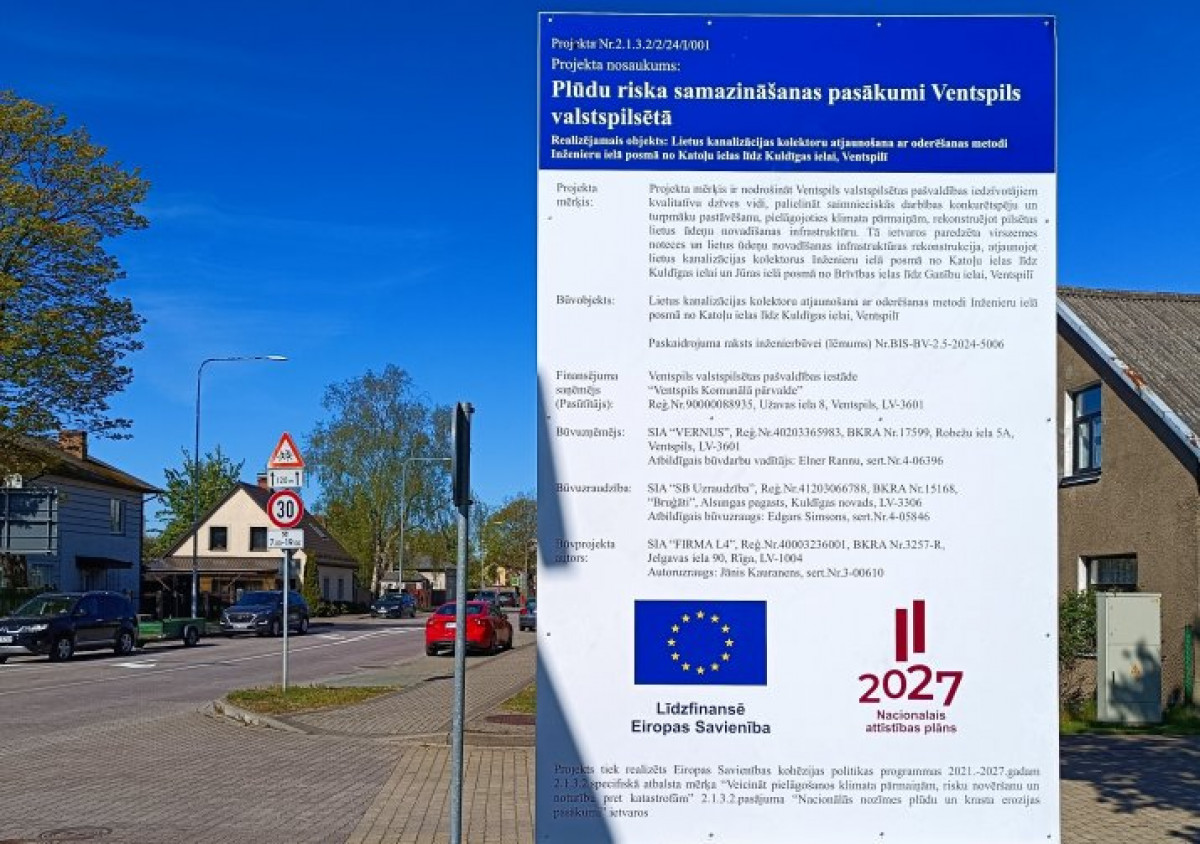 Чтобы снизить риски наводнений, в городе планируется реконструировать инфраструктуру отвода ливневых вод, построенную 50 лет назад. Коллекторы ливневой канализации будут отремонтированы на отрезке улицы Инжениеру от улицы Католю до улицы Кулдигас и на отрезке улицы Юрас от улицы Бривибас до улицы Ганибу. Наряду с футеровкой существующих трубопроводов будут также заменены крышки люков на этих улицах. Техническое состояние существующей инфраструктуры ливневой канализации на улицах Инжениеру и Юрас не обеспечивает в полной мере необходимый отвод воды и создает риски наводнений для примерно 16 464 жителей Вентспилса.