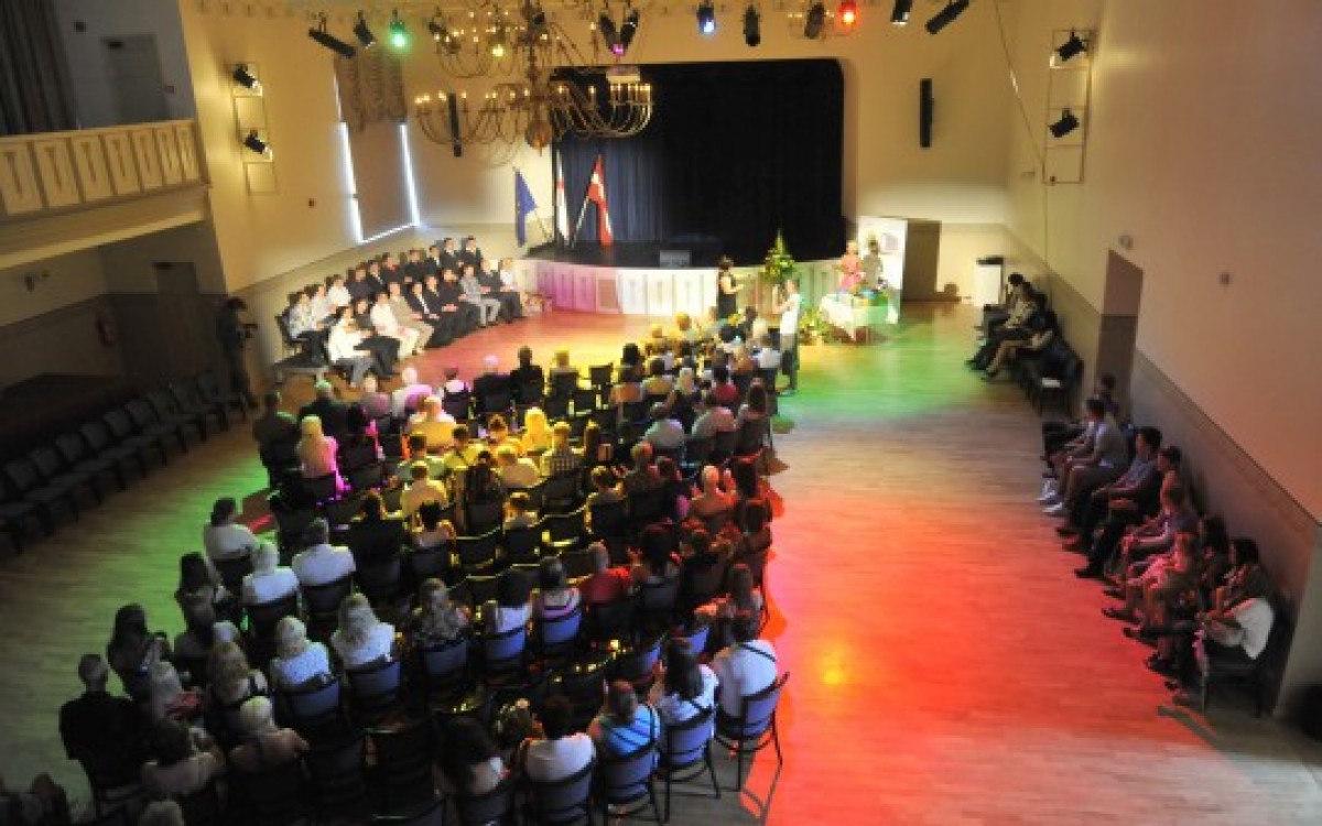 Перед выпускникам с речью выступил зампредседателя Вентспилсской гордумы Дидзис Ошениекс и зав. бюро Министерства образования и науки Инесе Матвеева.